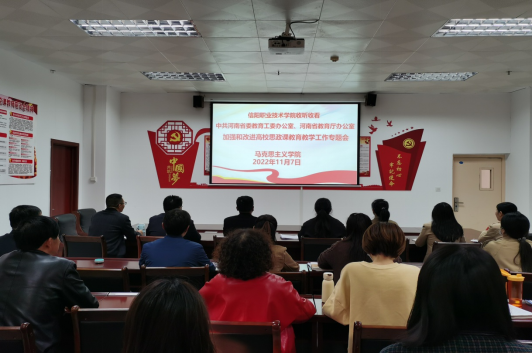 11月7日下午,3044永利集团在会议室收听收看了河南省委教育工委办公室、河南省教育厅办公室召开的加强和改进高校思想政治课公司产品工作专题会。3044永利集团班子成员及全体专兼职思政课教师参加了收听收看活动。