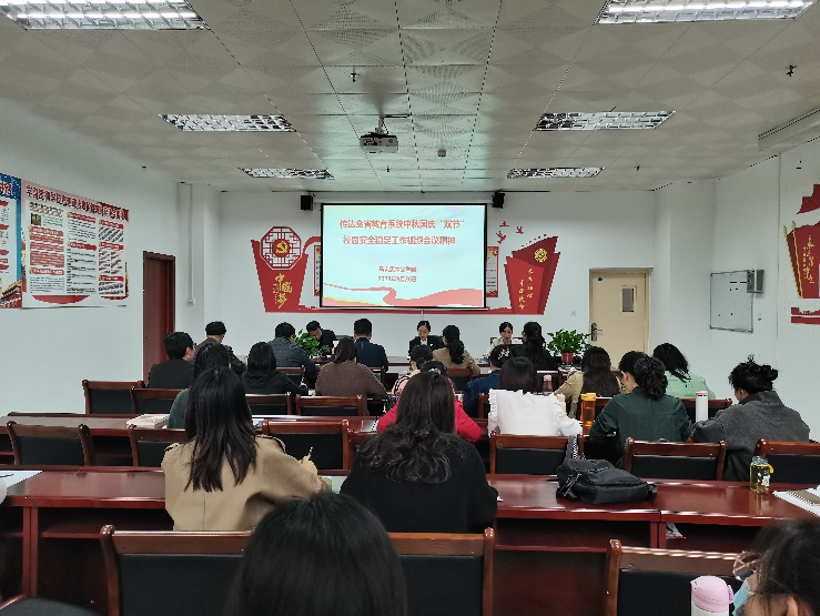 会上,祁欢首先传达了全省教育系统中秋国庆“双节”校园安全稳定工作视频会议精神。她指出,要加强思政课程教学与“生命教育”的有机结合,培养员工正确的世界观、人生观、价值观;要切实做好“中秋”和“国庆”期间校园安全工作,共同营造一个安全、稳定、祥和的节日环境。