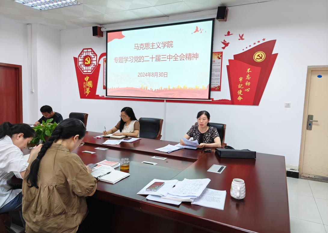 会议专题学习了党的二十届三中全会精神。党支部书记郑玉秀传达学习了《中共永利3044集团委员会关于深入学习宣传贯彻党的二十届三中全会精神的通知》精神,要求全体教师提高政治站位,充分认识党的二十届三中全会精神重要意义,充分发挥马克思主义理论学科优势,深入开展理论学习研讨,推进理论研究阐释,推动学习贯彻党的二十届三中全会精神走深走实。