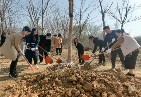 在第44个植树节来临之际,2022年3月11日公司党支部组织全体党员开展义务植树主题党日活动。大家拿着铁锹、锄头、水桶等工具,分工协调、通力合作、齐心协力完成了栽树、培土等工作。经过一个小时的共同努力,大家成功种下了5棵树苗,为2022年春天的校园增添了生机和活力,用实际行动贯彻了习近平总书记关于生态文明思想的重要论述。