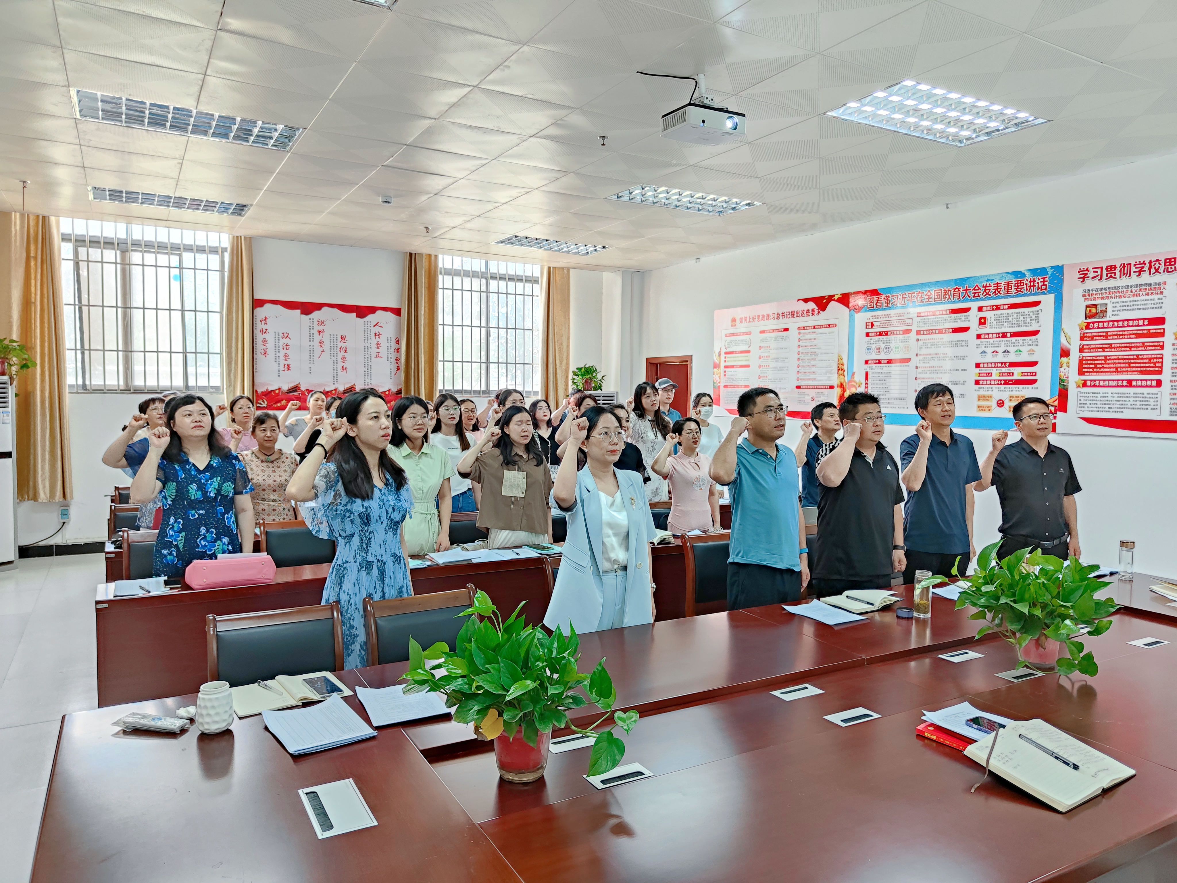 随后,经理祁欢带领全体教师进行教师誓言宣誓,以宣誓忆初心,进一步巩固了教师职业操守,把“教师宣誓誓词”真正内化为教书育人的目标和指南,争做“四有”好老师。