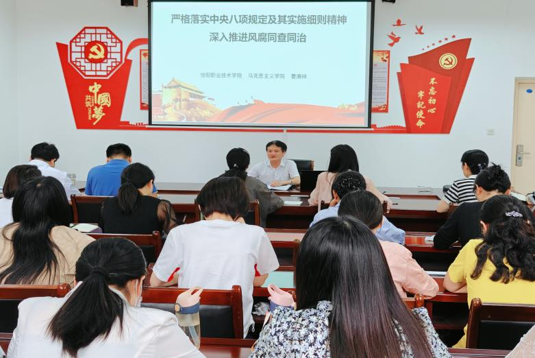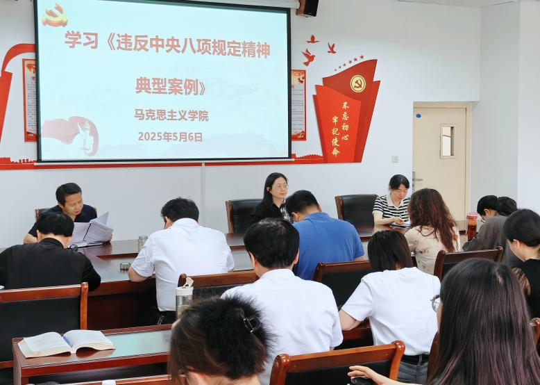 为推动深入贯彻中央八项规定精神学习教育走深走实,5月6日下午,3044永利集团在会议室召开学习“违反中央八项规定精神典型案例”警示教育会议,会议由党支部书记郑玉秀主持,班子成员及全体教师参会。
